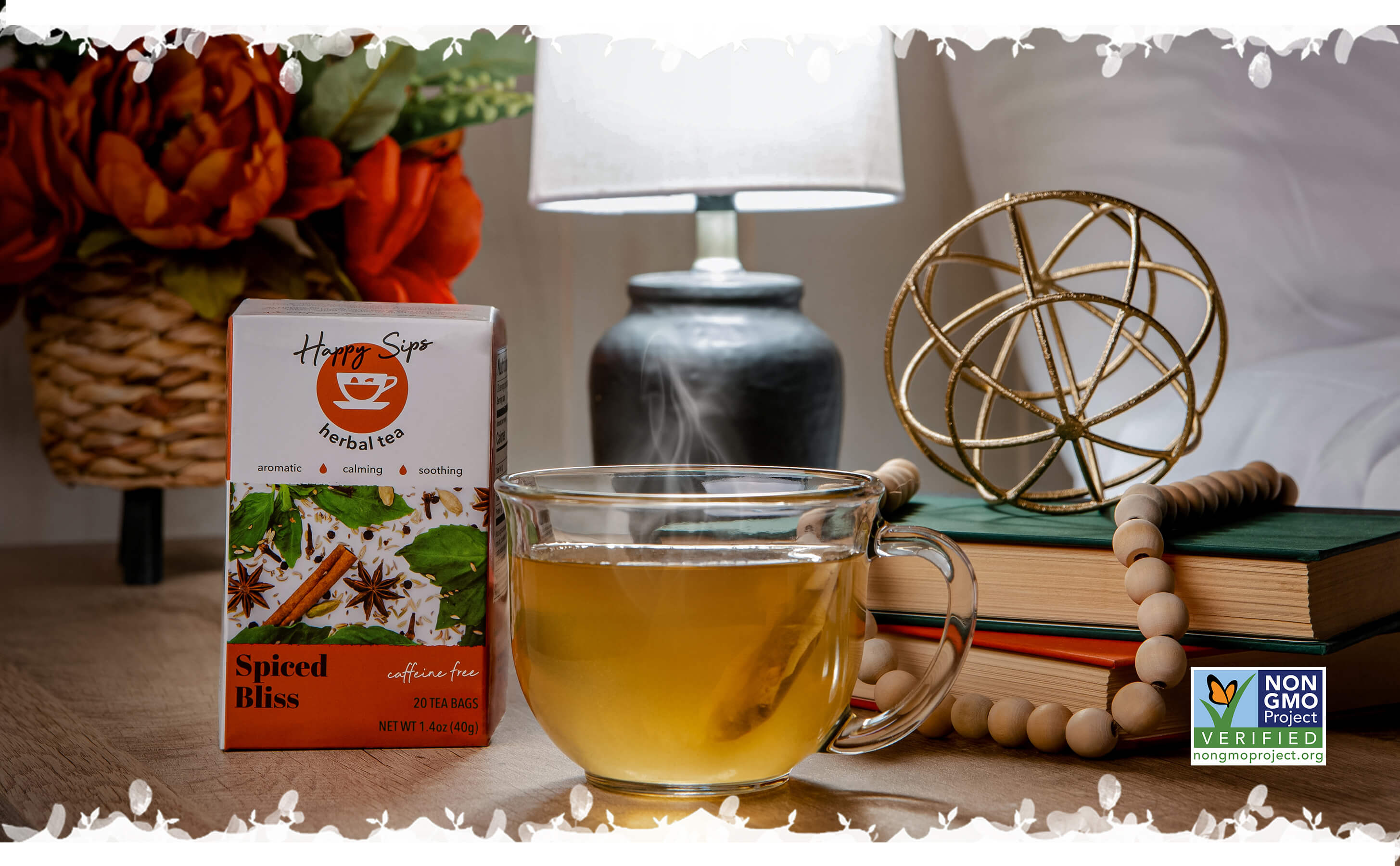 Our Herbal Teas are crafted with 11 all natural Non-GMO herbs & spices. Each of our ingredients serve a purpose to help you feel great throughout your day and night. Our teas offer many benefits to support your well-being, help you relax, and are 100% caffeine free.